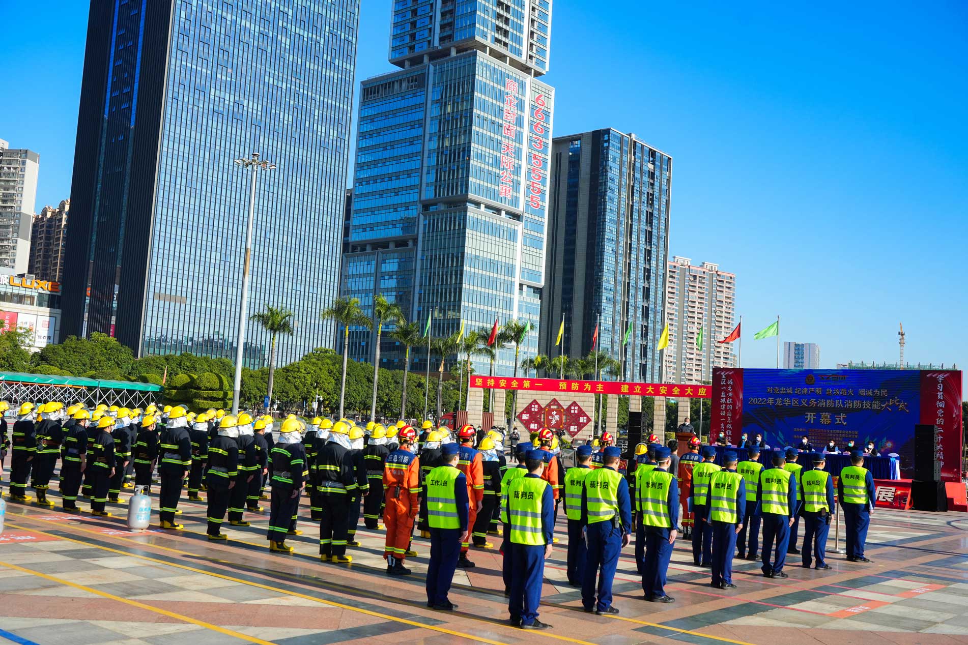 2022年龍華區(qū)義務(wù)消防隊(duì)消防技能大比武活動(dòng)在龍華文化廣場(chǎng)隆重舉行